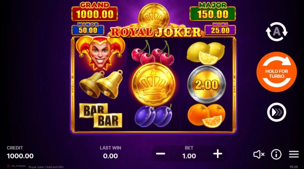 Royal Joker Hold and Win démo gratuite se trouve en début de notre article. Cette version d'essai du titre de Playson offre l'opportunité d'explorer toutes ses caractéristiques sans aucun engagement pécuniaire. Cela permet aux utilisateurs de se familiariser avec l'univers fruité, les icônes traditionnelles et les mécaniques de jeu Hold and Win avant de passer aux mises réelles.