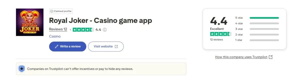 Royal Joker : Hold and Win de Playson obtient une note de 4,4/5 sur Trustpilot. La plupart des utilisateurs en font l'éloge et y reviennent fréquemment pour profiter de ce jeu de machine à sous !